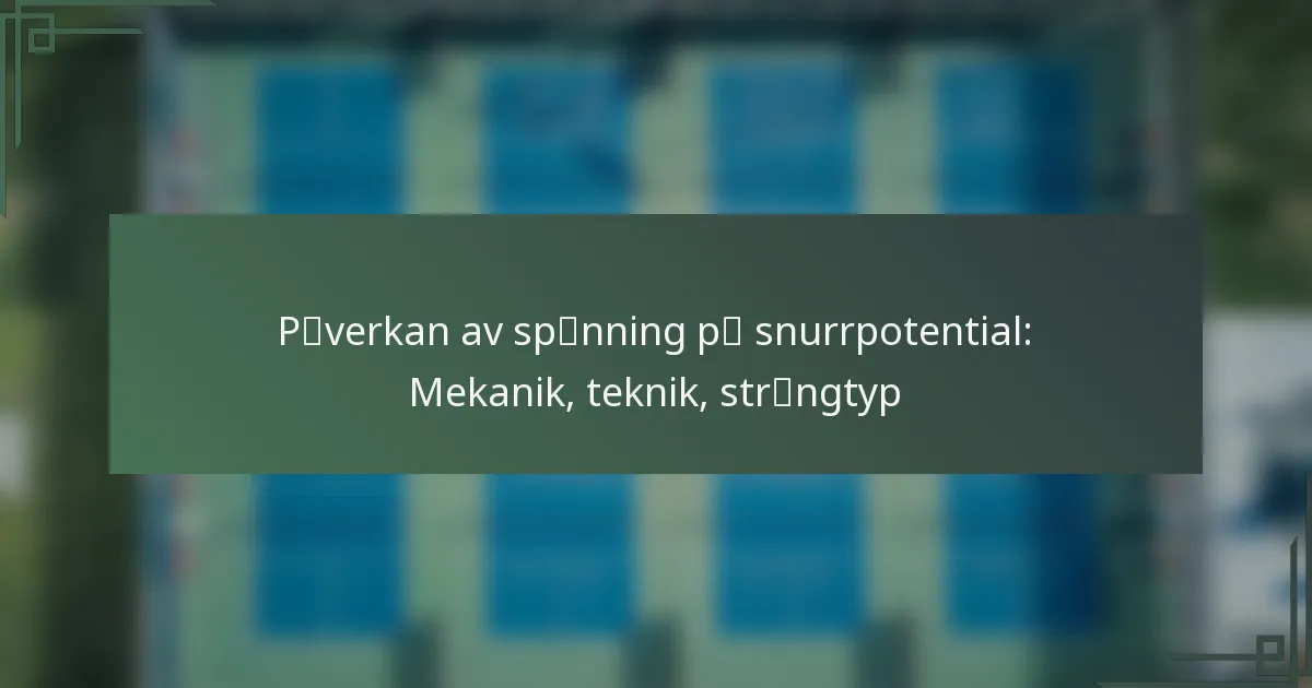 Att maximera spinnpotentialen involverar en kombination av greppjusteringar, svingtekniker och förståelse för hur strängspänning påverkar prestationen. Genom att finjustera dessa element kan spelare öka sin spinnproduktion, vilket gör deras slag mer effektiva och utmanande för motståndarna.