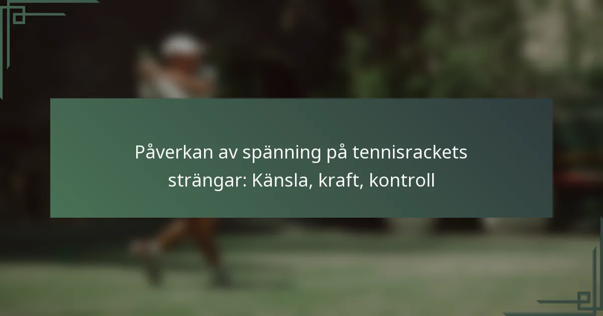 Spänningen i tennisrackets strängar spelar en avgörande roll för racketens övergripande prestanda. Den påverkar viktiga faktorer som känsla, kraft och kontroll, vilket påverkar hur spelare upplever bollkontakt och utför sina slag. Högre spänning förbättrar vanligtvis kontroll och feedback, medan lägre spänning kan öka kraft och komfort, vilket skapar en känslig balans som spelare måste överväga när de väljer sin stränginställning.
